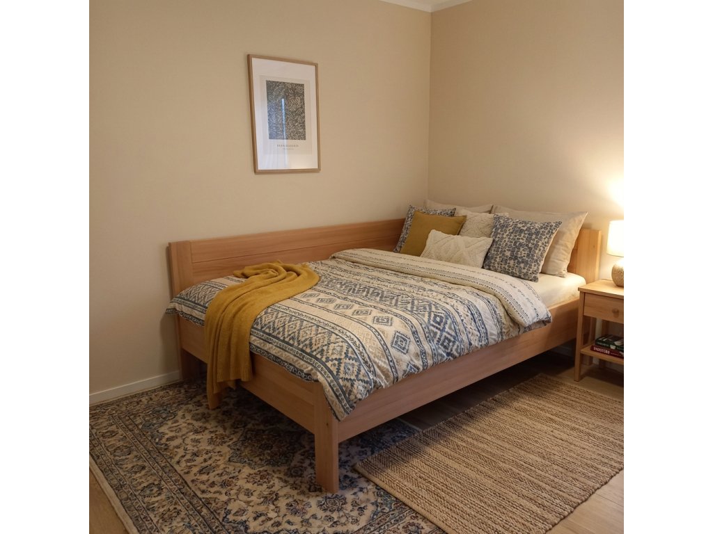 Masivní bukové dřevo dodává posteli přirozený vzhled a zaručuje dlouhou životnost i při každodenním používání.
