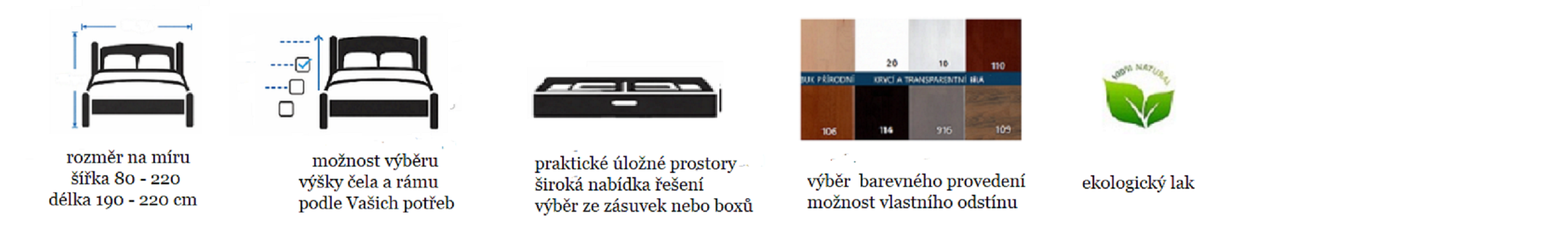 Dle požadavků zákazníka se postele mohou barevně upravovat do různých barevných odstínů,